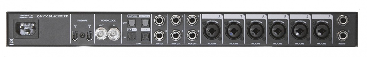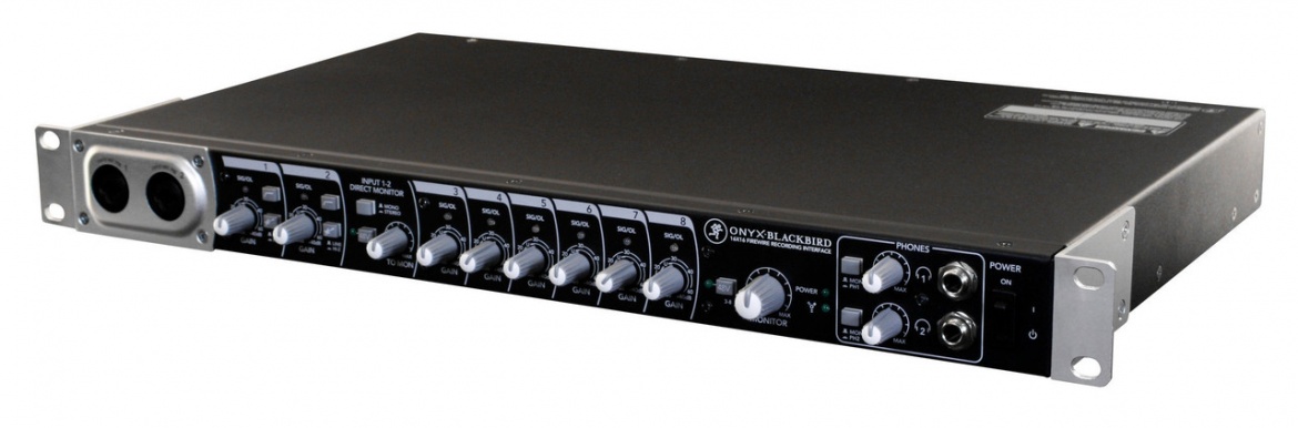 The Mackie Onyx Blackbird Premium 16x16 FireWire Recording Interface delivers industry-leading recording quality via eight boutique Onyx preamps and high-end 24-bit/96 kHz conversion in a sleek, rackmount design.Blackbird is equipped with high-end Cirrus Logic® AD/DA converters offering 114 dB dynamic range (A-weighted), phantom power and built-in DIs on the two front panel “Super Channels”.The “Super Channels” also provide quick access to crucial recording tools and feature true analog hardware monitoring, in both mono and stereo, for hassle-free zero-latency recording. The additional mic inputs, onboard 8x8 ADAT and word clock I/O provide easy integration into any digital or analog setup. Blackbird also works as a standalone 8-channel preamp rack.For more complex sessions, the powerful 18x16 Blackbird Control DSP Matrix Mixer allows for quick mix creation and routing of any input to any output at any volume and pan orientation. Additionally, custom names may be applied to all channels and output mixes for quick, at-a-glance reference and control. Blackbird is Mac/PC friendly and ready for most major DAWs right out of the box. No DAW? No problem. Blackbird comes standard with Mackie’s Tracktion 3™ Music Production Software so you can get started recording right away.Onyx Blackbird features a “Built-Like-A-Tank” design, with a sleek, powder-coated all-metal chassis.
