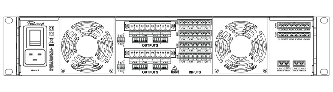 Powersoft’s legendary efficiency saves valuable energy, keeping both operational cost and ‘carbon footprint’ at a minimum: the Ottocanali 8K4 shines with outstandingly low power consumption and heat dissipation. This dramatically reduces costs from the AC mains supply and air conditioning/cooling systems – not to mention the benefits to the environment for a greener planet.
