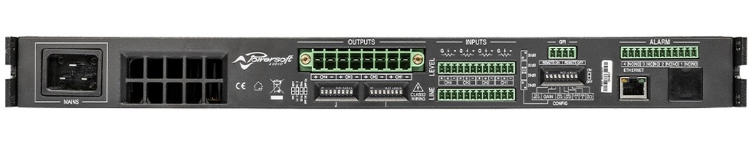 Quattrocanali is designed to operate with Lo-Z (from 2 Ω) and 70V/100V distributed lines or any mix of the two.
